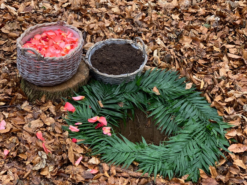Die Trauerfeiern lassen sich individuell gestalten, in den Wäldern stehen Andachtsorte zum trauern und zum Erinnern zur Verfügung. Die Asche wird in biologisch abbaubaren Urnen am Fuße eines zuvor ausgewählten Baumes beigesetzt. Grundsätzlich soll die Natur im Wald so belassen werden wie sie ist. Auf Grabgestecke und Kränze muss deshalb verzichtet werden. Die Arbeit der Grabpflege übernimmt die Natur.