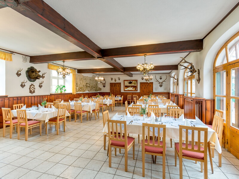 Zu Heiligenkreuz gehört auch die Jagd - somit ist der Jagdsaal der ideale Ort für Gesellschaften mit bis zu 70 Personen. Wie der Name schon sagt, ist der Saal festlich mit Jagdtrophäen eingerichtet und bietet einen direkten Zugang zum Gastgarten. Auf Wunsch kann ein mobiler Beamer und eine mobile Leinwand organisiert werden.