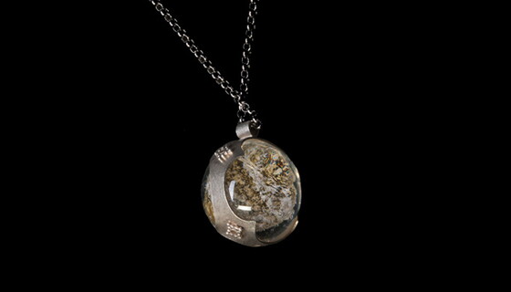 Nano Secret Erinnerungsschmuck besteht aus außergewöhnlichen und aufwendig gestalteten Formen mit Gold- oder Silberinlays oder synthetischen Farbsteinen.